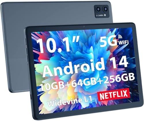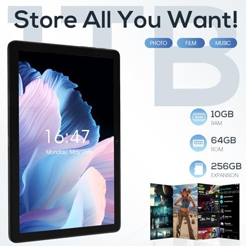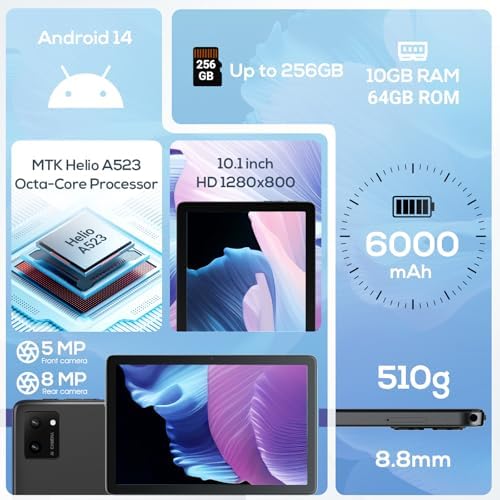 About this item 【Android 14 High Performance】Powered by a 1.8GHz Octa-core processor and Android 14, ensures smooth performance and efficient multitasking, making it ideal for work, reading, studying, and entertainment. 【10+64GB + Expandable to 256GB】With 10GB+64GB of built-in storage and support for microSD expansion up to 256GB, the tablet offers ample space for your files. Ample storage space allows you to download any apps you want. 【6000mAh Long-Lasting Battery】The high-capacity 6000mAh battery supports up to 5 days on standby or over 6 hours of continuous use. The USB Type-C port enables convenient fast charging. 【10-inch HD Touchscreen】Featuring a 1280×800 low blue light LCD display, the tablet delivers sharp and vibrant visuals, perfect for video streaming, web browsing, and comfortable reading. 【Dual-Band WiFi & BT 5.0】Equipped with Wi-Fi 5 and Bluetooth 5.0, this 10-inch tablet supports both 2.4GHz and 5GHz bands, delivering stronger connectivity and faster internet speeds. 【Perfect Gift of Christmas】This 10-inch Android tablet isn’t just another present—it’s the thrilling surprise they’ve been waiting for. Practical, popular, and guaranteed to light up their face on Christmas morning. Ready to be the hero of Christmas?